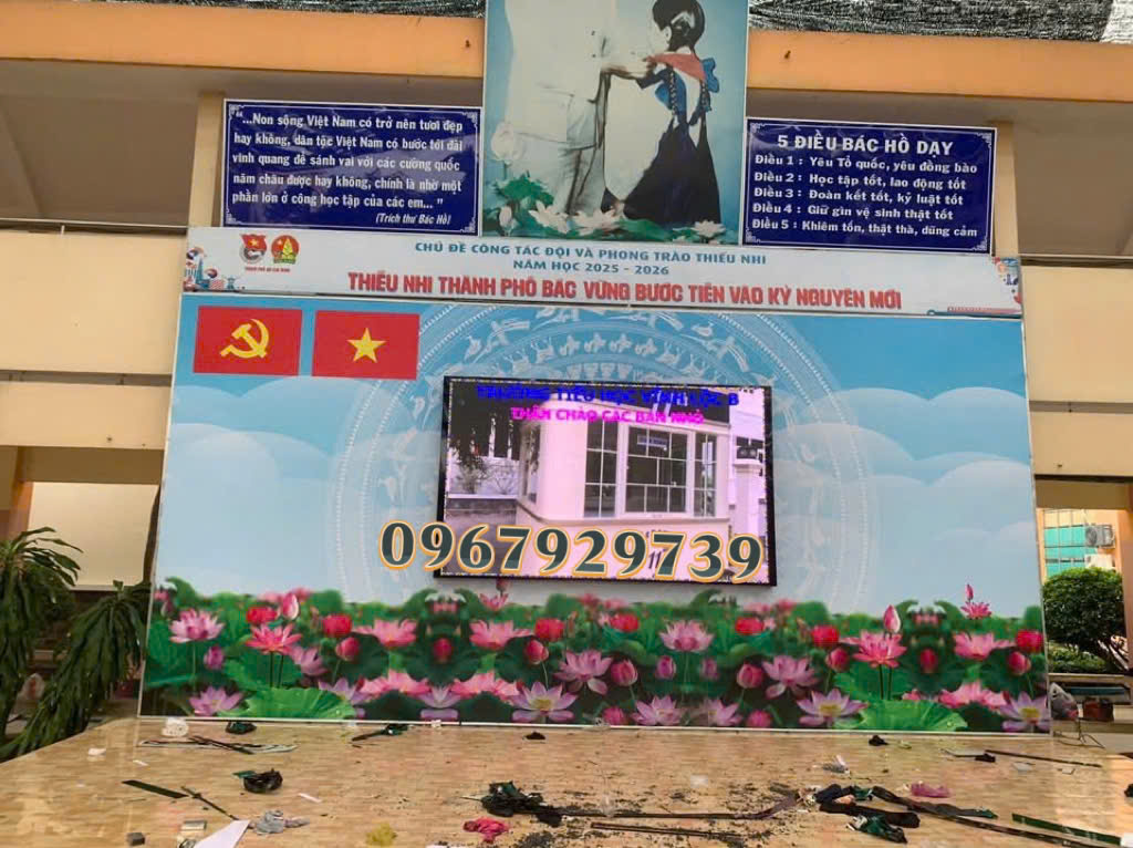 Các trường học từ tiểu học, THCS, THPT cho đến đại học đều có nhiều nhu cầu trình chiếu đa dạng: lễ khai giảng, tổng kết năm học, Ngày Nhà giáo 20/11, hội thảo khoa học, họp phụ huynh, giảng dạy trực quan, truyền thông nội bộ… Trước đây, các trường chủ yếu dùng máy chiếu hoặc phông bạt, nhưng hai giải pháp này đều có nhiều hạn chế: máy chiếu mờ nhạt khi phòng sáng, phông bạt chỉ hiển thị hình ảnh tĩnh.